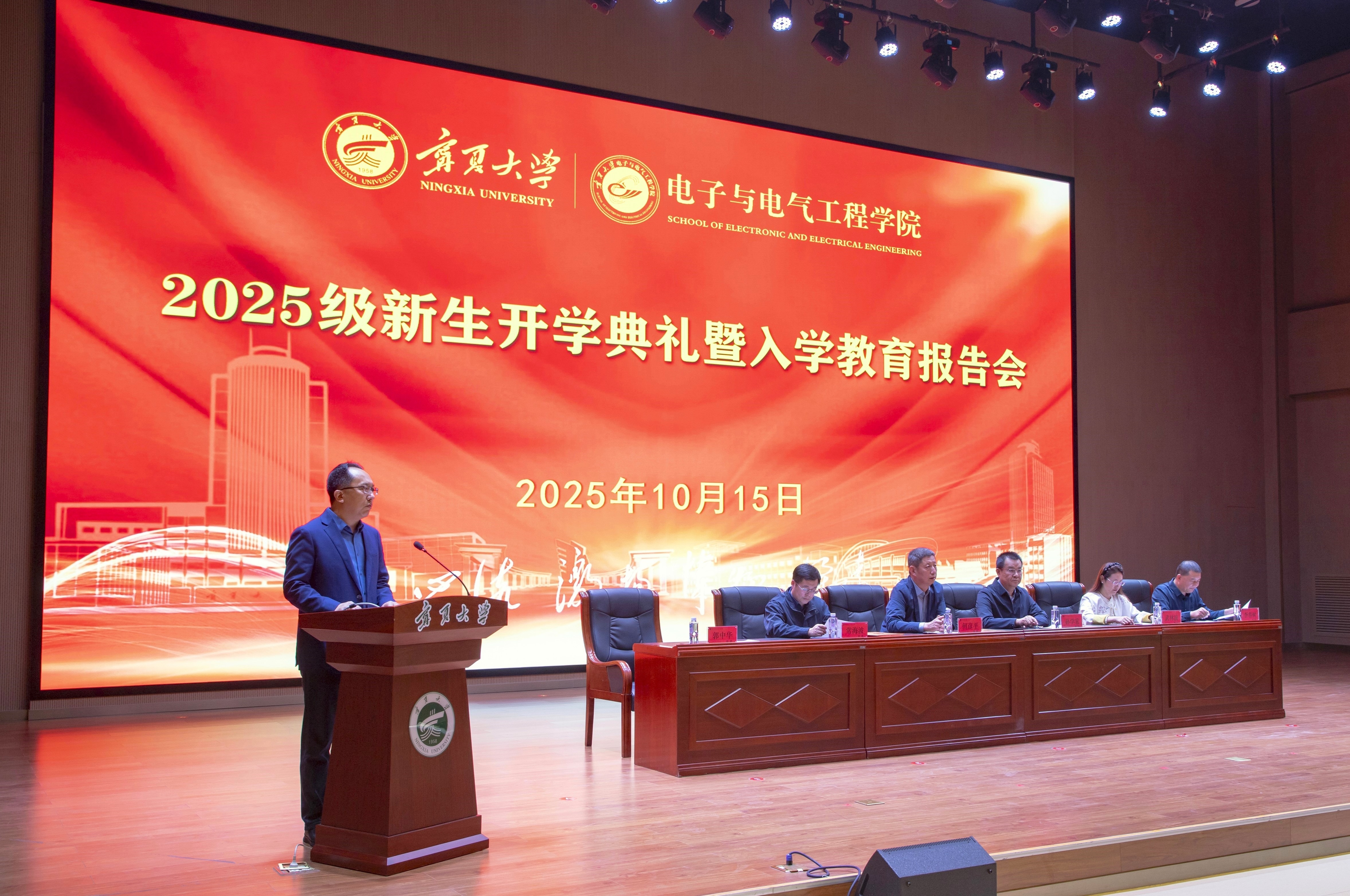【电院讯 李苗苗/文 陈帅仰、焦浩展/图】秋风送爽,杏坛迎新。10月15日,我院在贺兰山校区笃行楼一楼报告厅举行2025级新生开学典礼暨入学教育报告会。来自全国各地的259名新生齐聚贺兰山麓,以电路为舟、代码为桨...